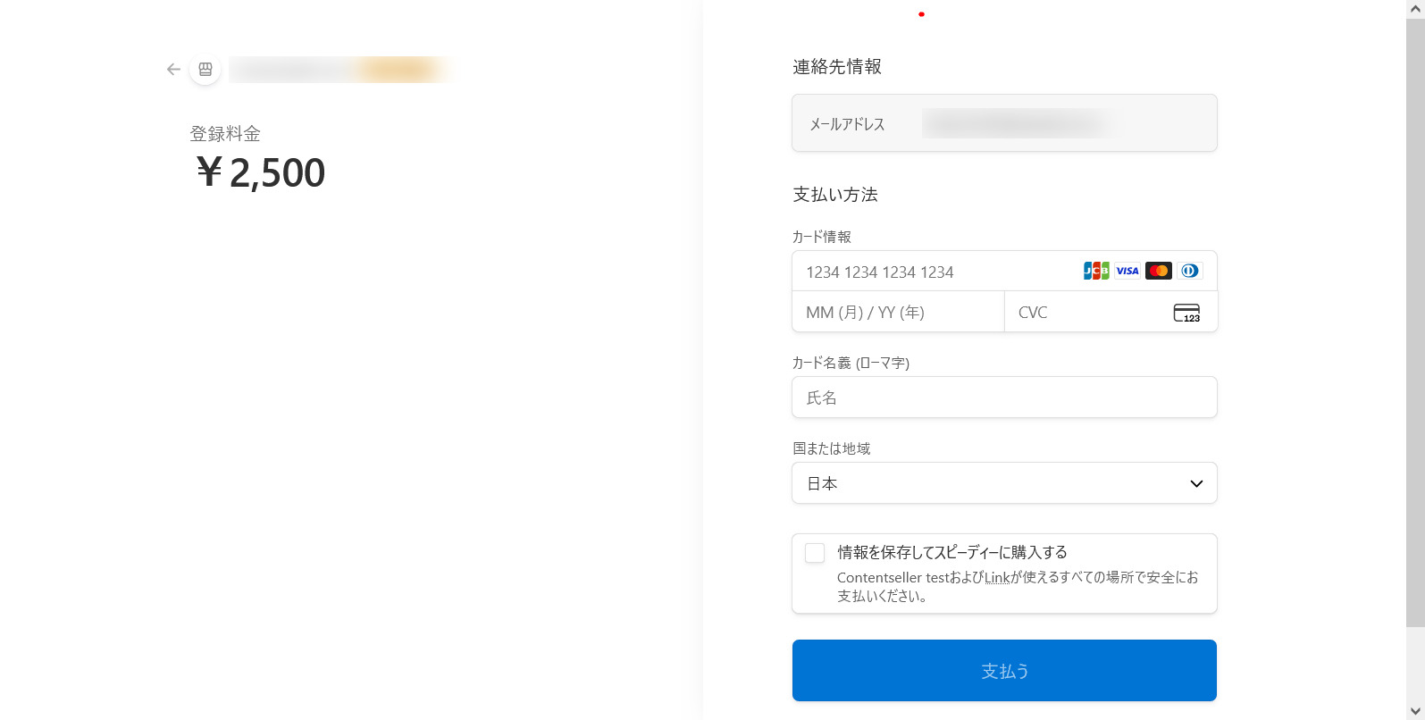 ※Stripe上のシステムで決済する例